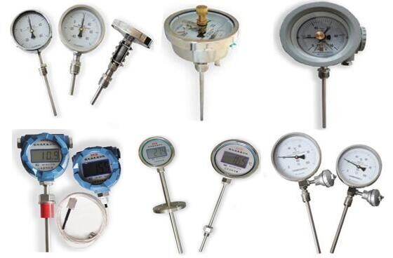 雙金屬溫度計(jì)是一種測量中低溫度的現(xiàn)場檢測儀表,是基于繞制成環(huán)性彎曲的雙金屬片組成,其中一端固定,另一端受熱便可帶動指針旋轉(zhuǎn),標(biāo)度盤上便可指出所測量的介質(zhì)溫度。一般雙金屬溫度計(jì)被用于低溫就地測量指示溫度,而熱電阻與熱電偶被用于中低溫或者中高溫測量并輸出信號進(jìn)入控制系統(tǒng)監(jiān)控。