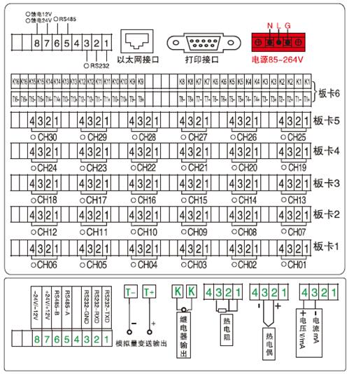 熱電阻、毫伏等信號(hào))??蓭?4路報(bào)警輸出或32路模擬量變送輸出,Mobus RTU RS232/485通訊接口,以太網(wǎng)接口,微型打印機(jī)接口和USB接口,TF卡插座;可提供傳感器配電;具有顯示功能好,實(shí)時(shí)曲線顯示,歷史曲線追憶,棒圖顯示,報(bào)警列表顯示等。人性化的外觀設(shè)計(jì)、良好的功能體現(xiàn)、可靠的硬件品質(zhì)、完善的制造工藝,使它具有高的性能價(jià)格比,廣泛應(yīng)用于冶金、石油、化工、建材、造紙、食品、制藥、熱處理、水處理等各種行業(yè)工業(yè)現(xiàn)場。